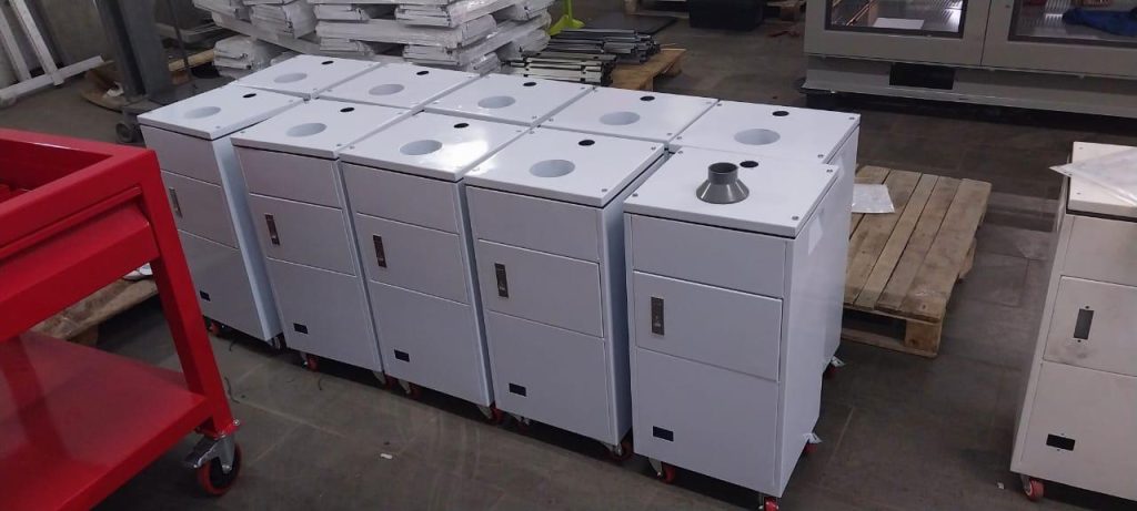 Setelah proses pengelasan selesai, panel kabinet metal tersebut kemudian dihaluskan menggunakan mesin grinding untuk menghilangkan sisa-sisa las dan ketidaksempurnaan pada permukaan. Tahap ini memastikan permukaan kabinet halus dan rapi, sehingga siap untuk diberi lapisan pelindung.